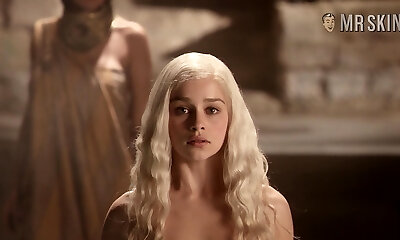 Taking a hot bathtub blonde babe Emilia Clarke exposes her lovely juicy backside