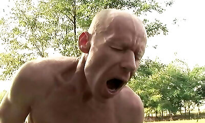 Banging big-chested old grandma from both ends