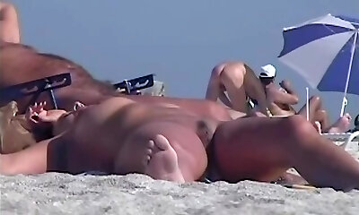 Voyeur tapes nudists pulverizing eachother's girlfriend on a nudist beach