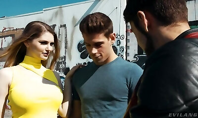 Bisexual hottie Emily Blacc goes nuts during outdoor ac/dc 3some