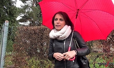 Bright looking in her red jacket slut Candy is picked up for car fucky-fucky