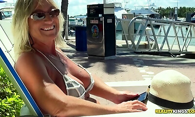 zwei versaute milfs haben spaß mit der bbc, während ihre bikinis kaum ihre brustwarzen bedecken