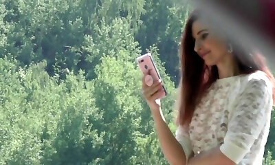 russische luftig anna polina demonstriert ihre brüste im freien und bekommt ihren gestopften kater innen