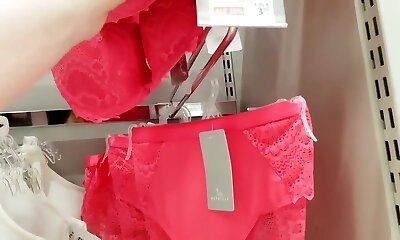 windelmädchen benetzt sich beim einkaufen von bhs und höschen