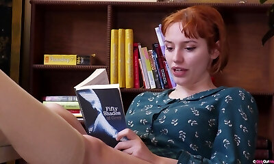 die sexy rothaarige liebt es, ihr höschen beiseite zu ziehen, damit du ihr beim spielen mit emma evins an ihrer muschi zusehen kannst