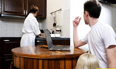 frau putzt das haus, während stiefsohn stiefschwester fickt