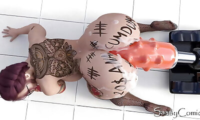 Extreme Monster Dildo Anal Fuck Machine Pink Hole Stretching - 3D Animation.