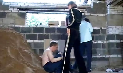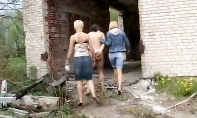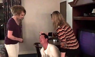 Two dominas punishing slave guy