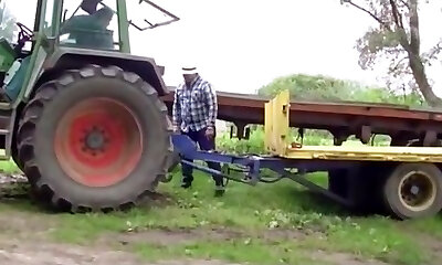 Two mature men getting off