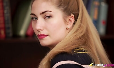 Nerdy Swedish hottie goes absolutely mischievous and plays with her cunny