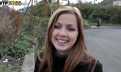Hot babe fucking outdoors for cash