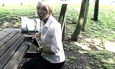 Horny Blonde Giving Blowjob and Frigging in Public Park