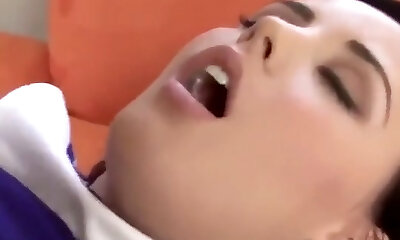 roleplay schoolgirl in uniform lays back for sex