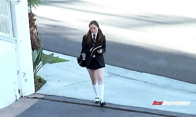 Pretty teenie in college uniform Ariel McGuire is losing her anal purity