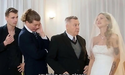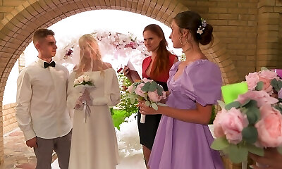 Perv Milf Teaches a Pretty Blonde Bride And the Fiancé To Fuck During the Wedding Ceremony Rehearsal