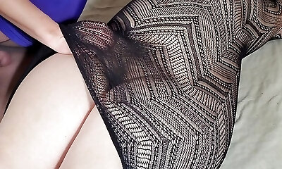 Chubby amateur bi-atch in black stockings is made for giving a titjob