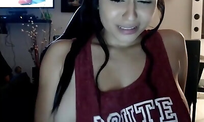 Incredibly giant boobies with big nipples are flashed by amateur cam girl