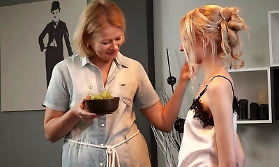 Hot girly-girl granny seduces teen girl