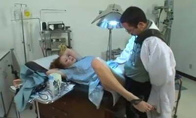 Hot asian babe in stirrups banged hard by doctor on table