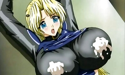 Captive hentai gets squeezed her hefty melon tits by doctor