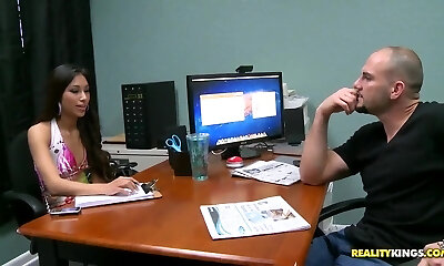Asian black-haired stunner Nicoline screams being fucked in the ass by Tony