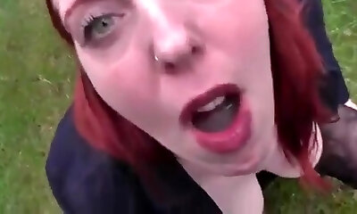 Redhead Deutsch milf works that phat cock with her ass and facehole in the park