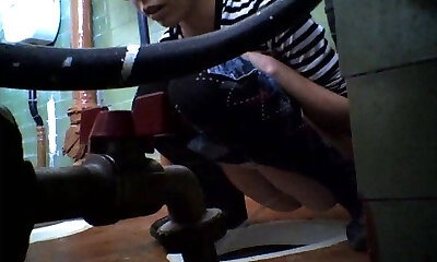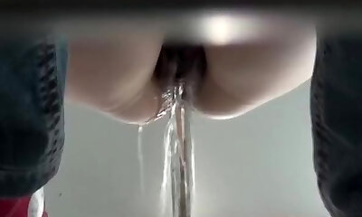Piss pouring out of hot pussy on toilet hidden cam scenes